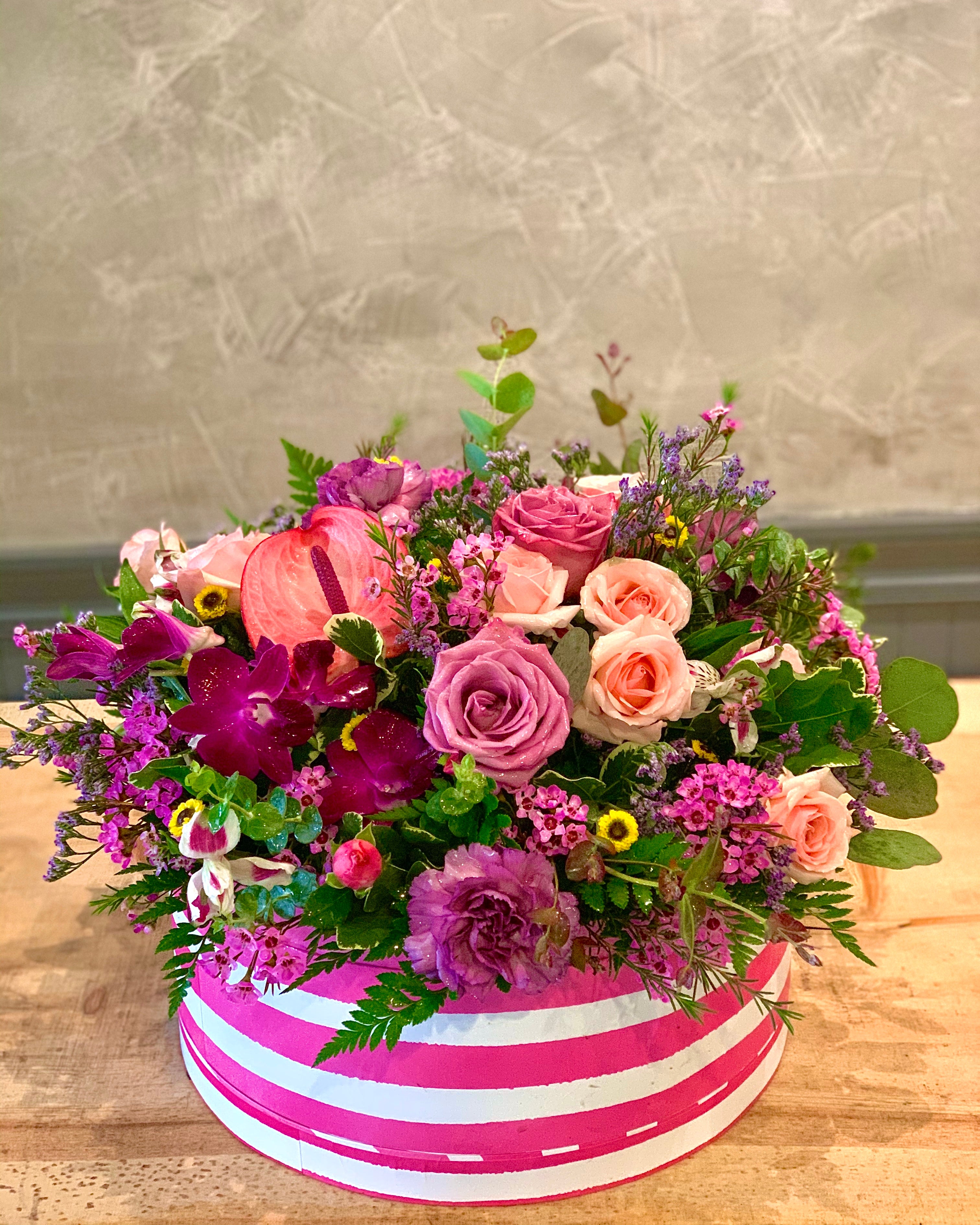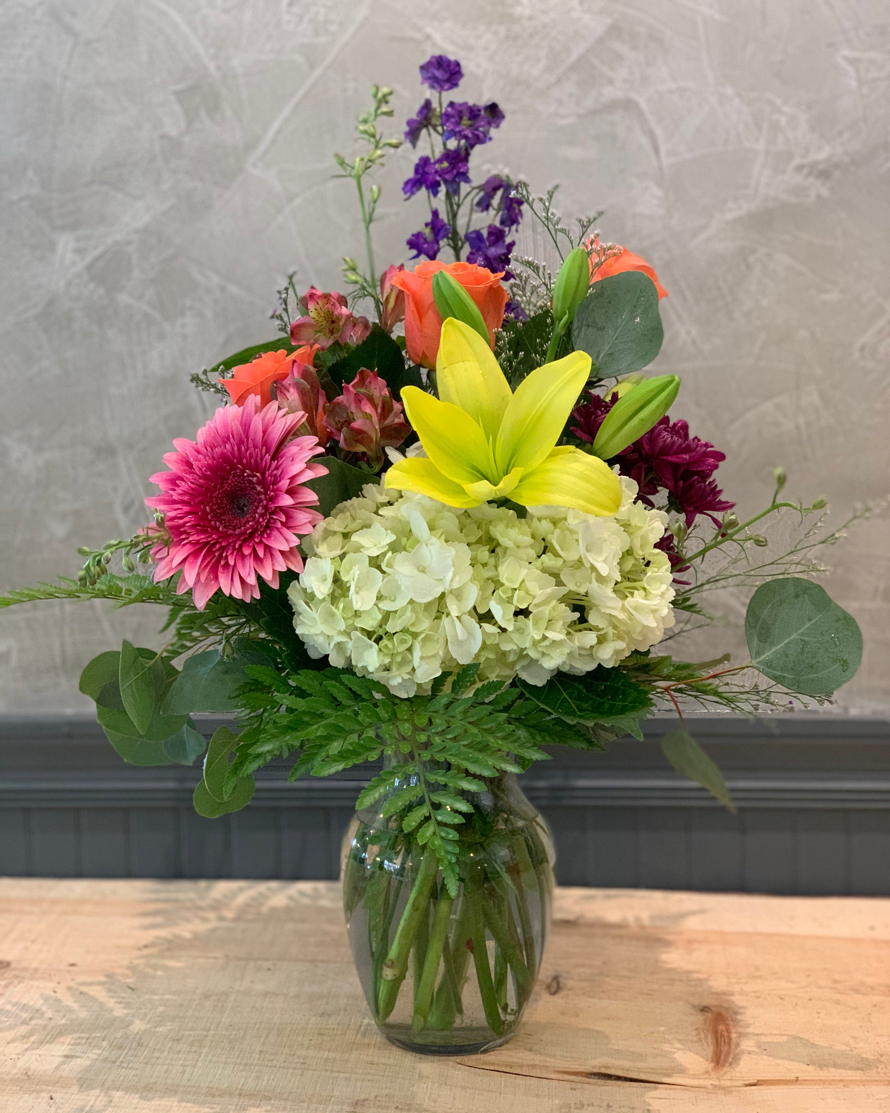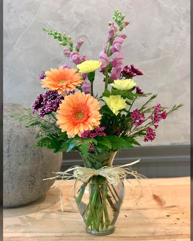 Let our designers decide for you! We will handpick the very best scented roses, seasonal flowers, and foliage to create a stunning bouquet that is guaranteed to bring beauty to your home. Please note that the style and varieties of flowers will vary from those shown, we guarantee beauty and freshness paramount and ensure it will bring happiness and delight. Let Phoebe choose !