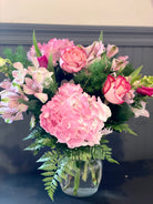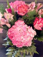 High end blooms fill a glass vase with so much love. Orchids, roses, Hydrangeas, tulips and more. You simply can not go wrong with this one!