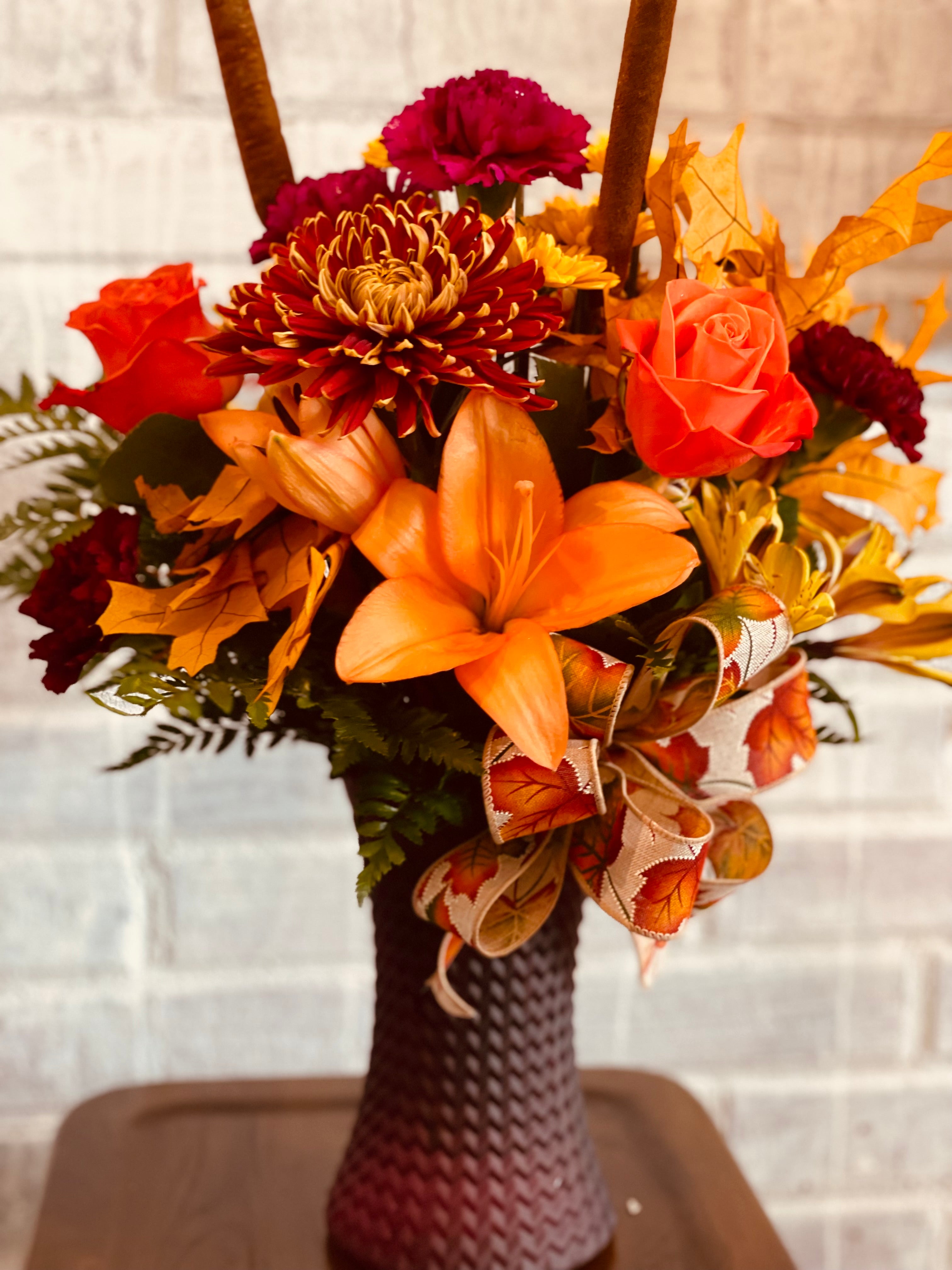 Harvest love is all the Autumn vibes. Beautiful textures and colors of fall in a dimpled jewel tone vase will certainly allow you to be in your best fall spirit!