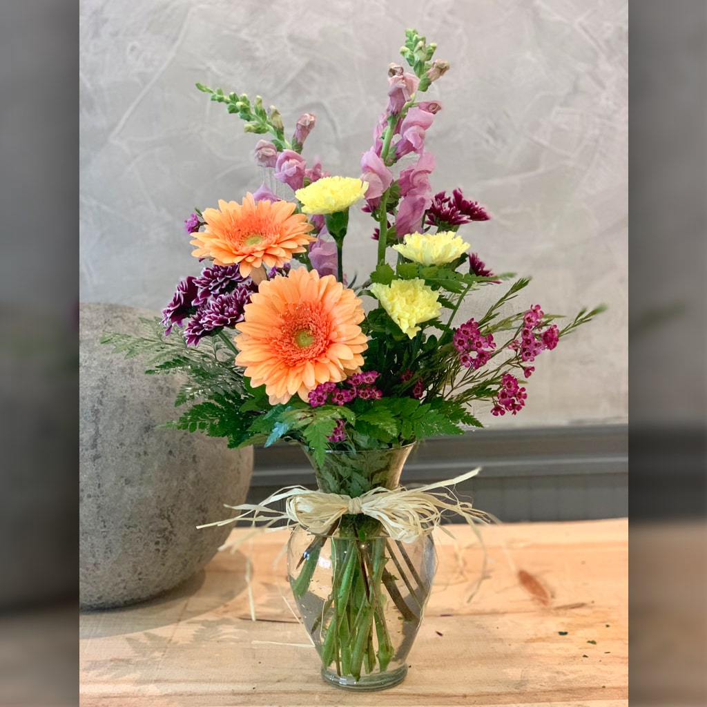 Let our fresh Gerbera daisy carnations, mums, and snapdragons fill her favorite room with grace and gratitude.