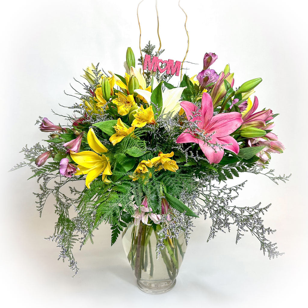 Discover nature's beauty with our Fields of Lilies Bouquet. 6 stunning lilies are delicately complemented by Tree Fern, Plamosa, Limo, and Curly Willow. Create a gorgeous centerpiece and bring a touch of the outdoors inside your home!