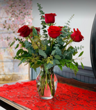 Beautiful half dozen vased rose arrangement, ready to go or be delivered! A traditional favorite.